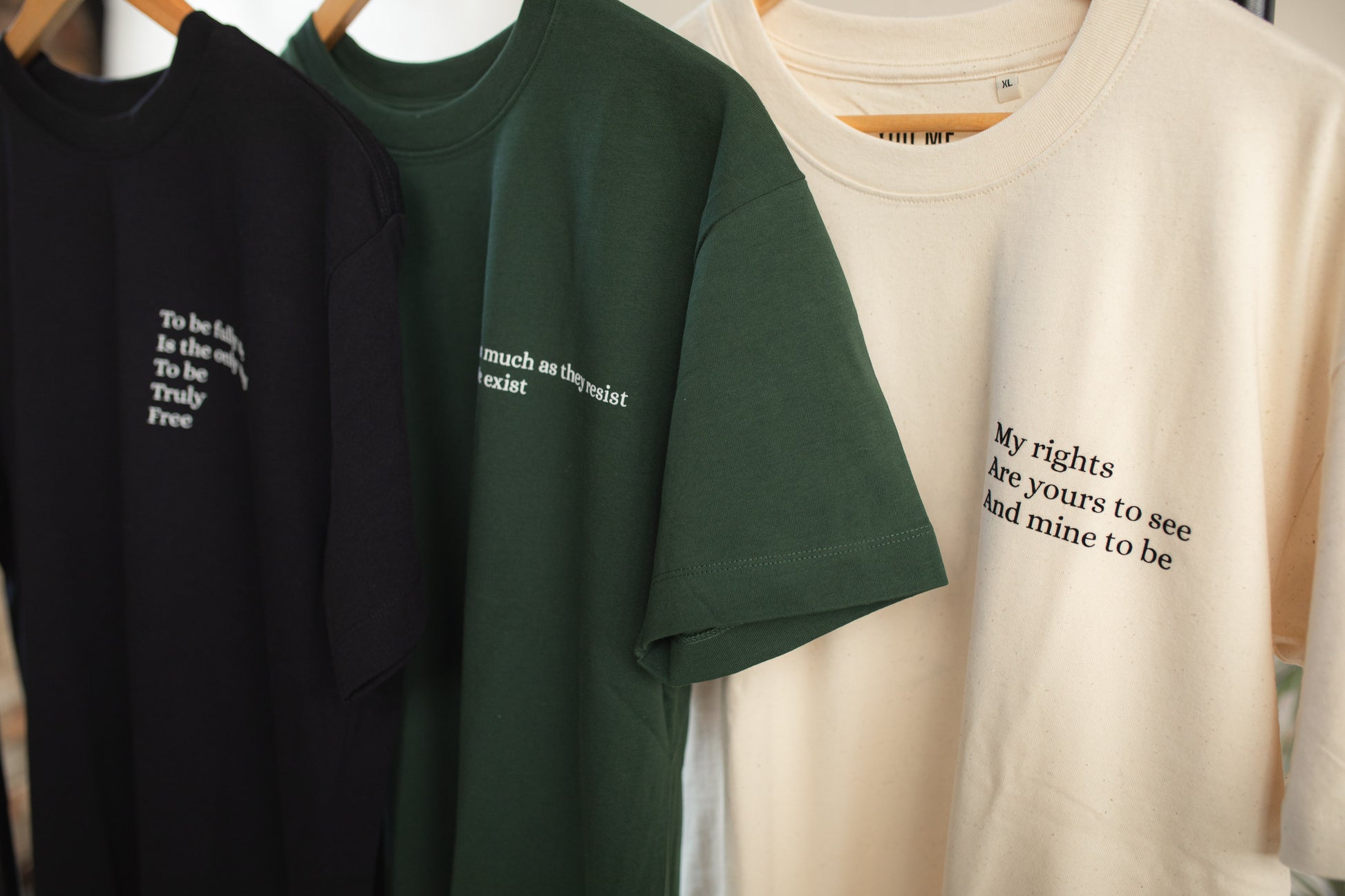 Stating "My rights are yours to see, and mine to be" in symbolic statement and a powerful call for trans and queer rights. Moving away from rainbow clothing, stand with us in solidarity to make your statement!